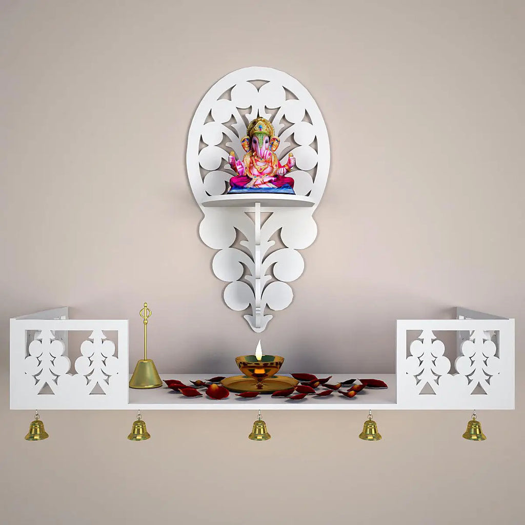 Beautiful Wall Hanging Wooden Temple/ Pooja Mandir Design with Shelf, White Color