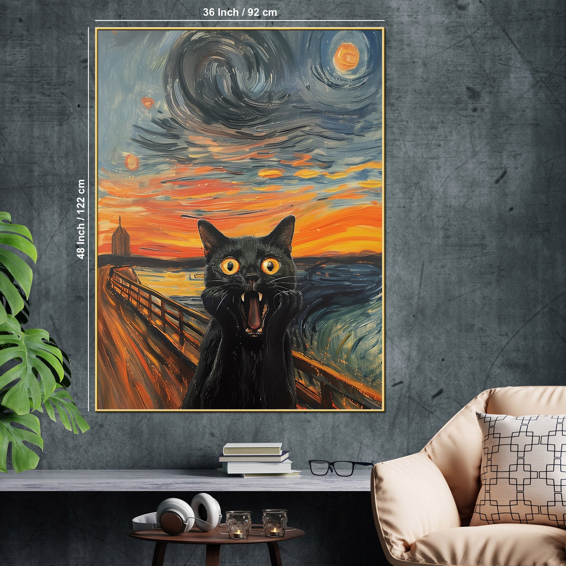 Munch The Scream Cat Van Gogh Vibes Cotton Canvas Wall Painting