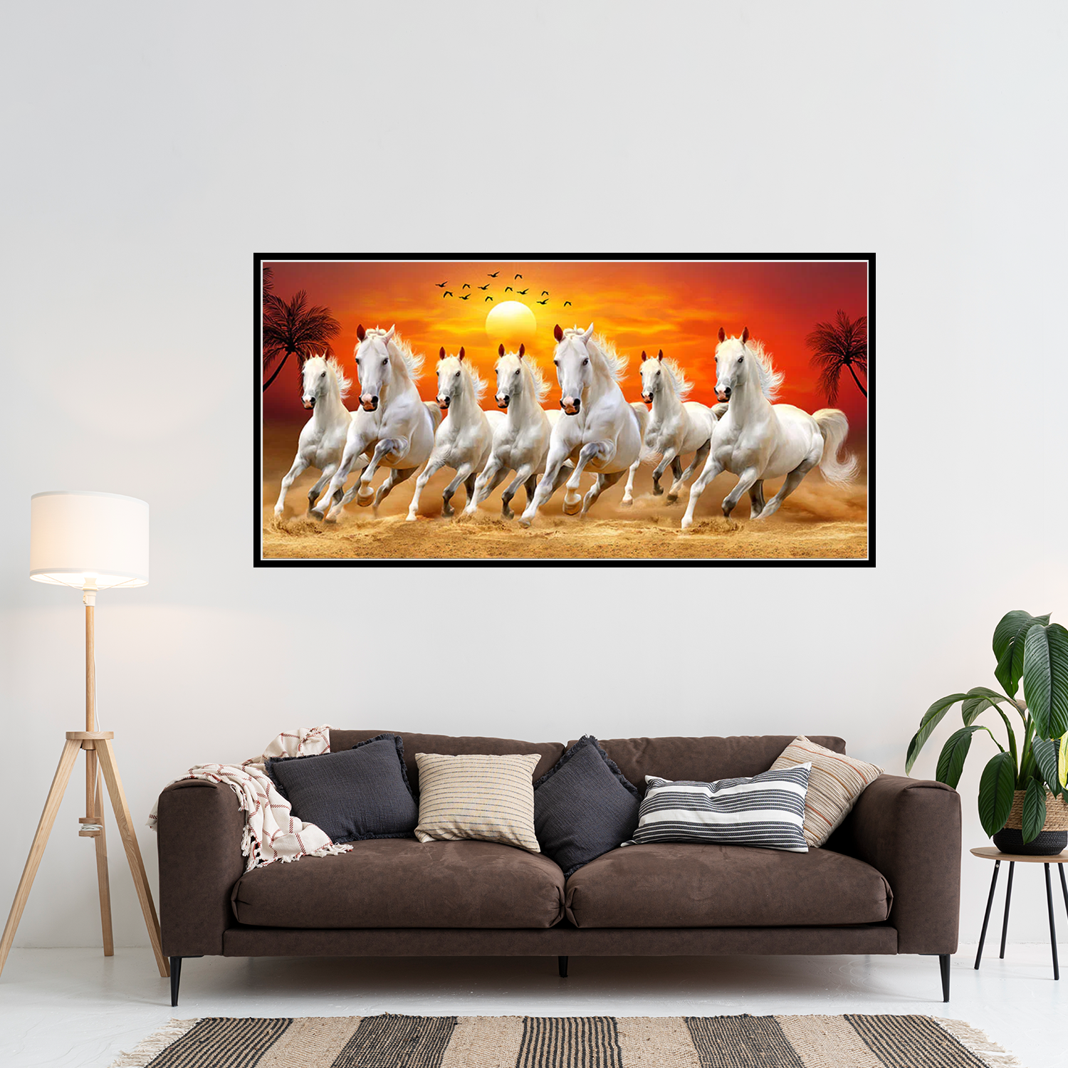 Premium Seven Running Horses at Sunrise Canvas Painting for Wall Decors