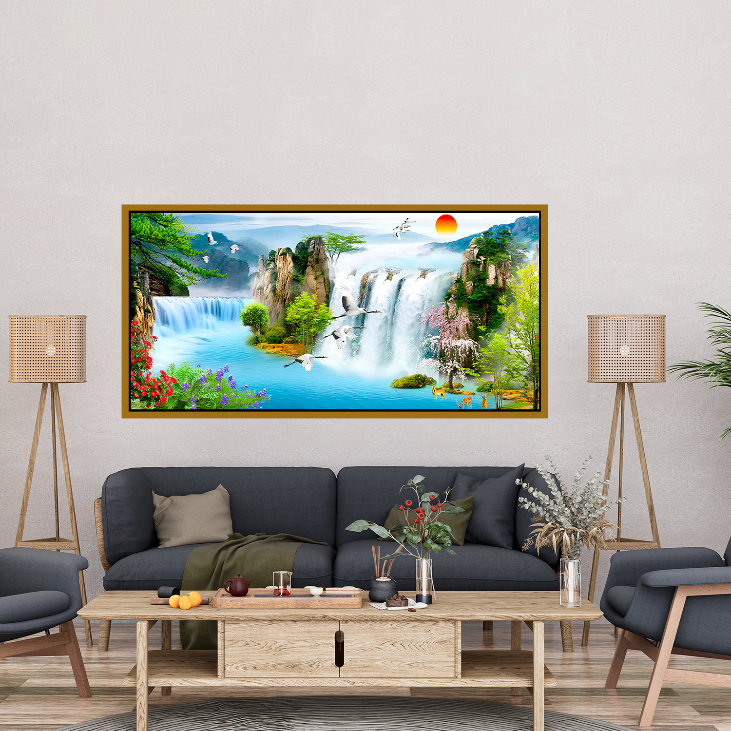 Premium Stunning Waterfall Nature Scenery of Colorful Canvas Wall Paintings & Arts
