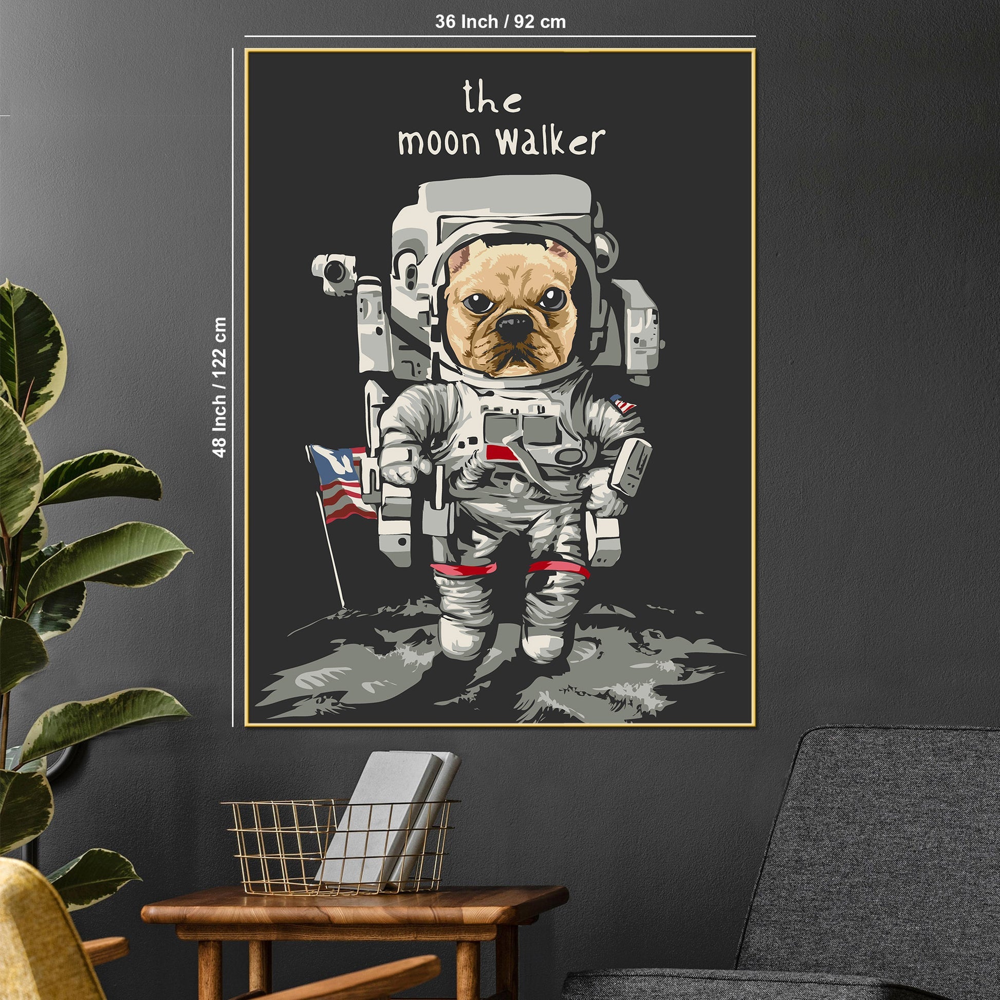 The Real Moon Walker Astronaut Dog Cotton Canvas Wall Painting